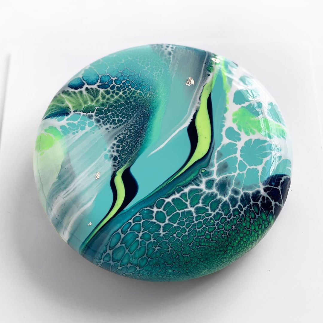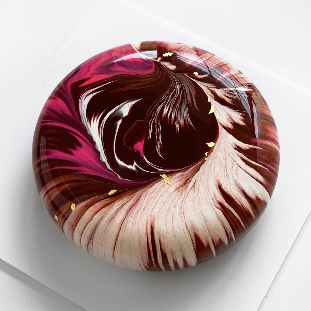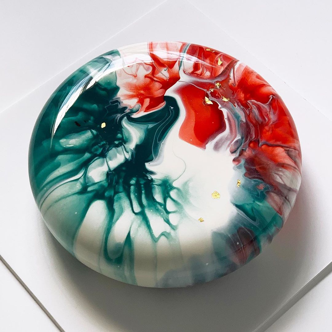 將糖漿淋在慕斯蛋糕的表面,經過特殊的處理後,蛋糕的表面將會光面如鏡,人們將之稱為“鏡面蛋糕”。來自哥斯達黎加聖何塞的魔幻色彩,讓蛋糕如著了魔一般……
